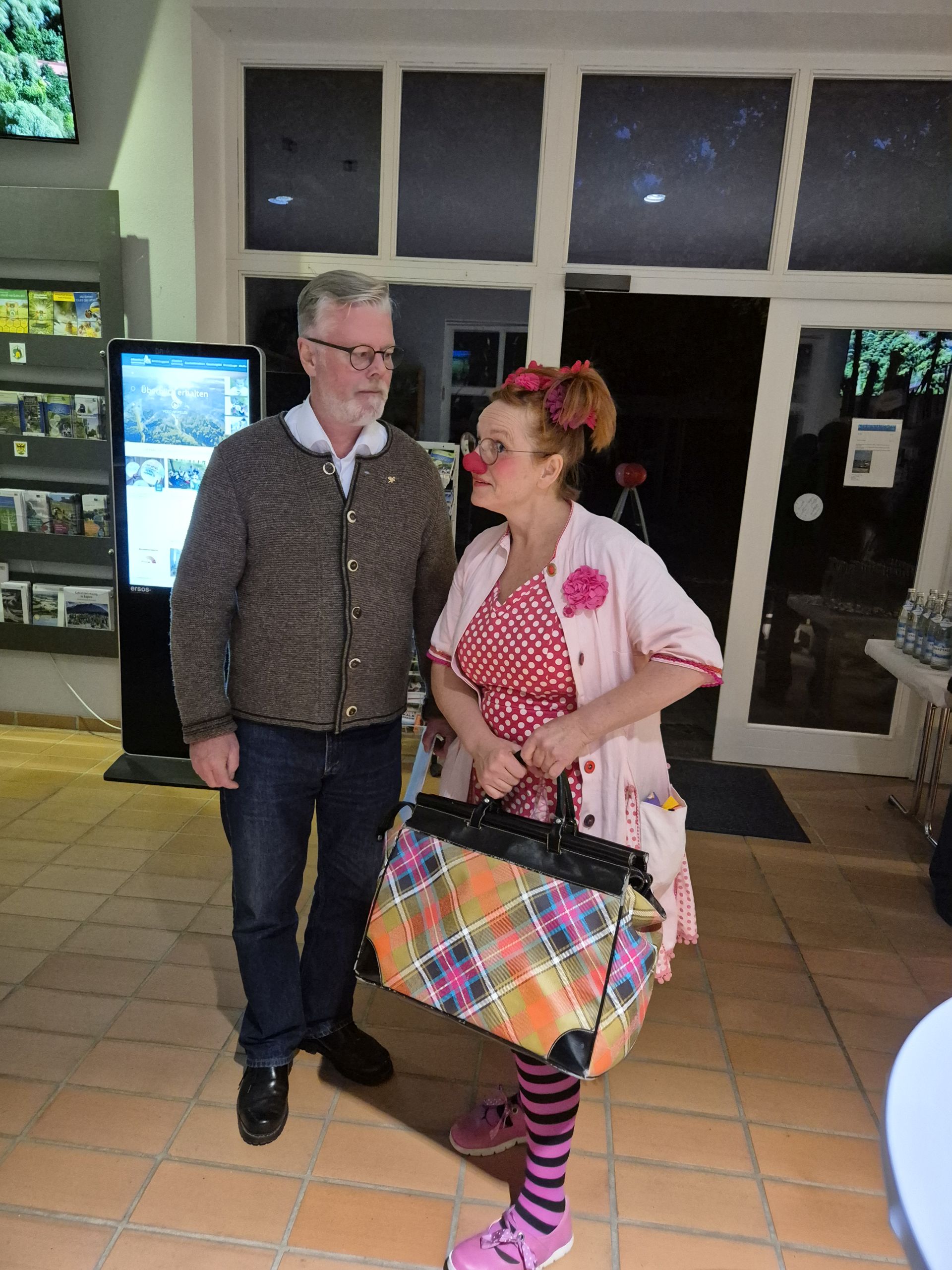 Schon beim Empfang der Gäste begrüßte "Brunhilde Würschtl", Clownin von den KlinikClowns e. v. die Gäste und sorgte für so manchen "Glücksmoment". Hinter Brunhilde steckt Charlotte Liepelt, die als Gastrednerin die Zuhörer mit Einblicken in ihre Arbeit als Clownin sehr beeindruckte. Es wurde aufgezeigt, wie in Kliniken und Altenheimen schon mit kleinen Gesten Freude geschenkt wird und so auch nachweislich die Gesundheit der Patienten mit einer "Portion Glück" beeinflusst werden kann.