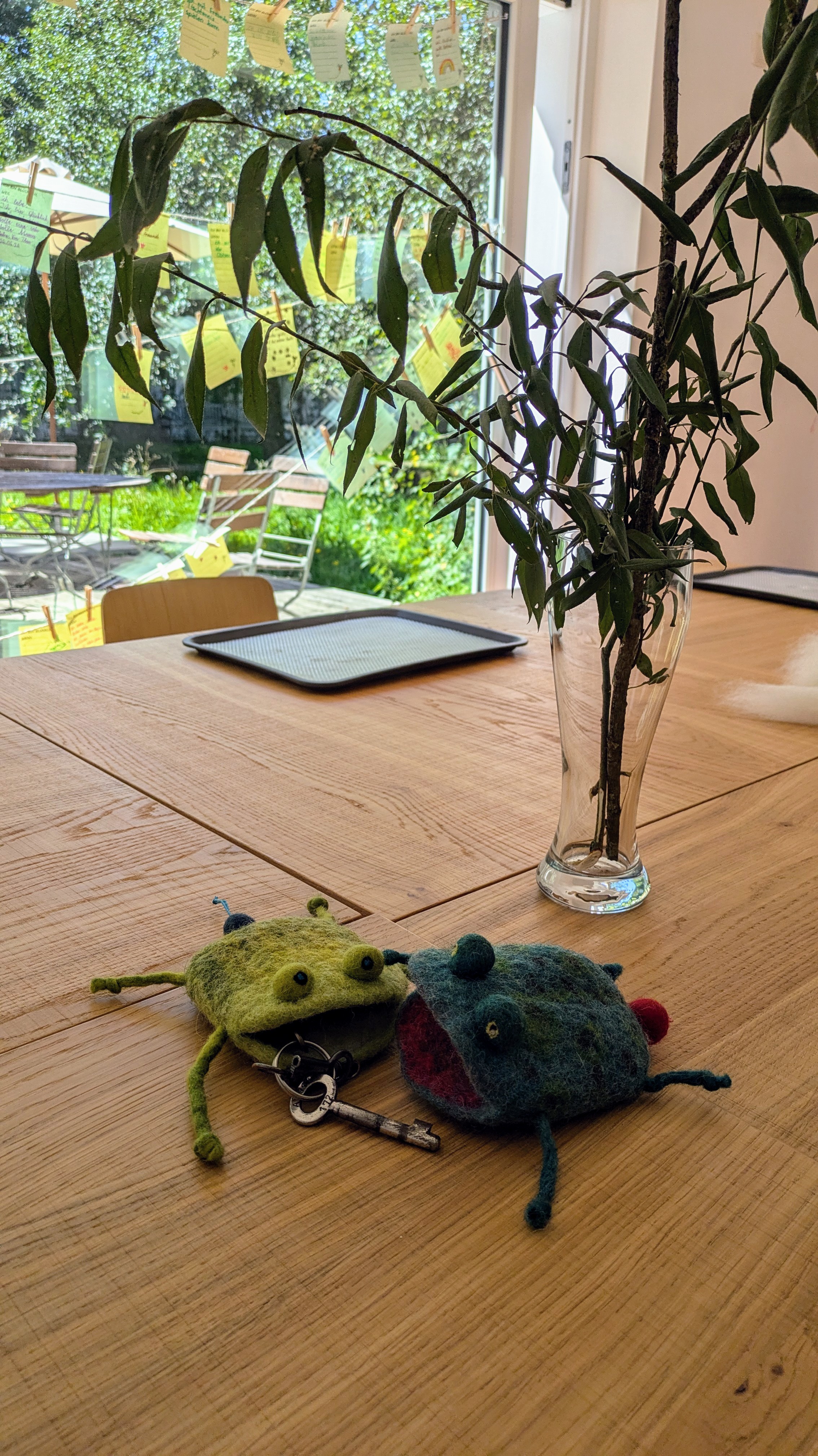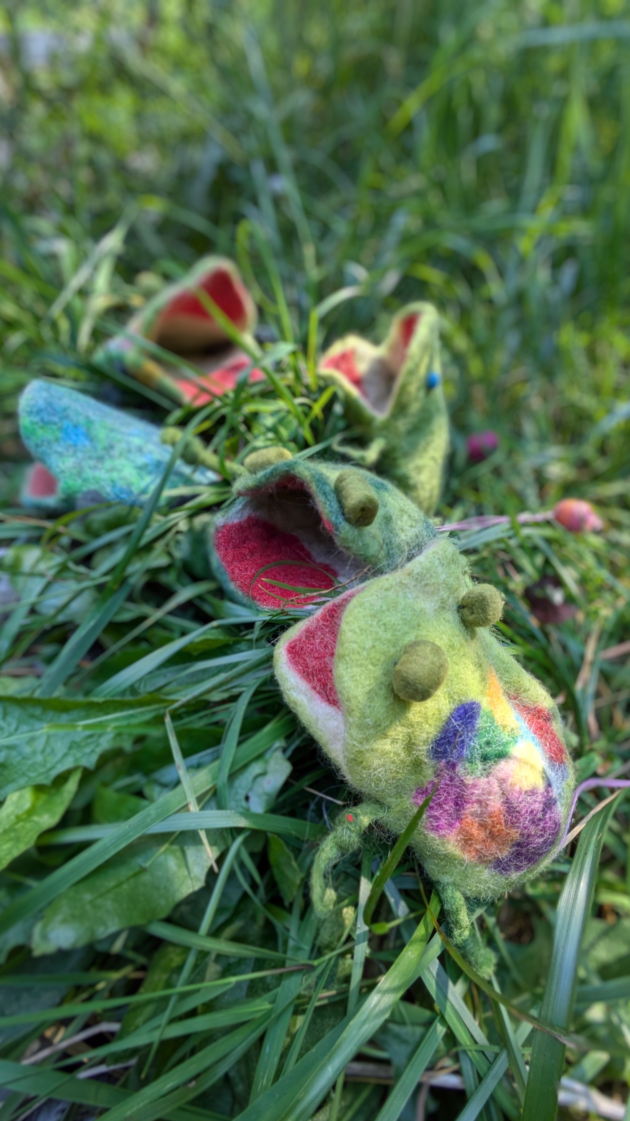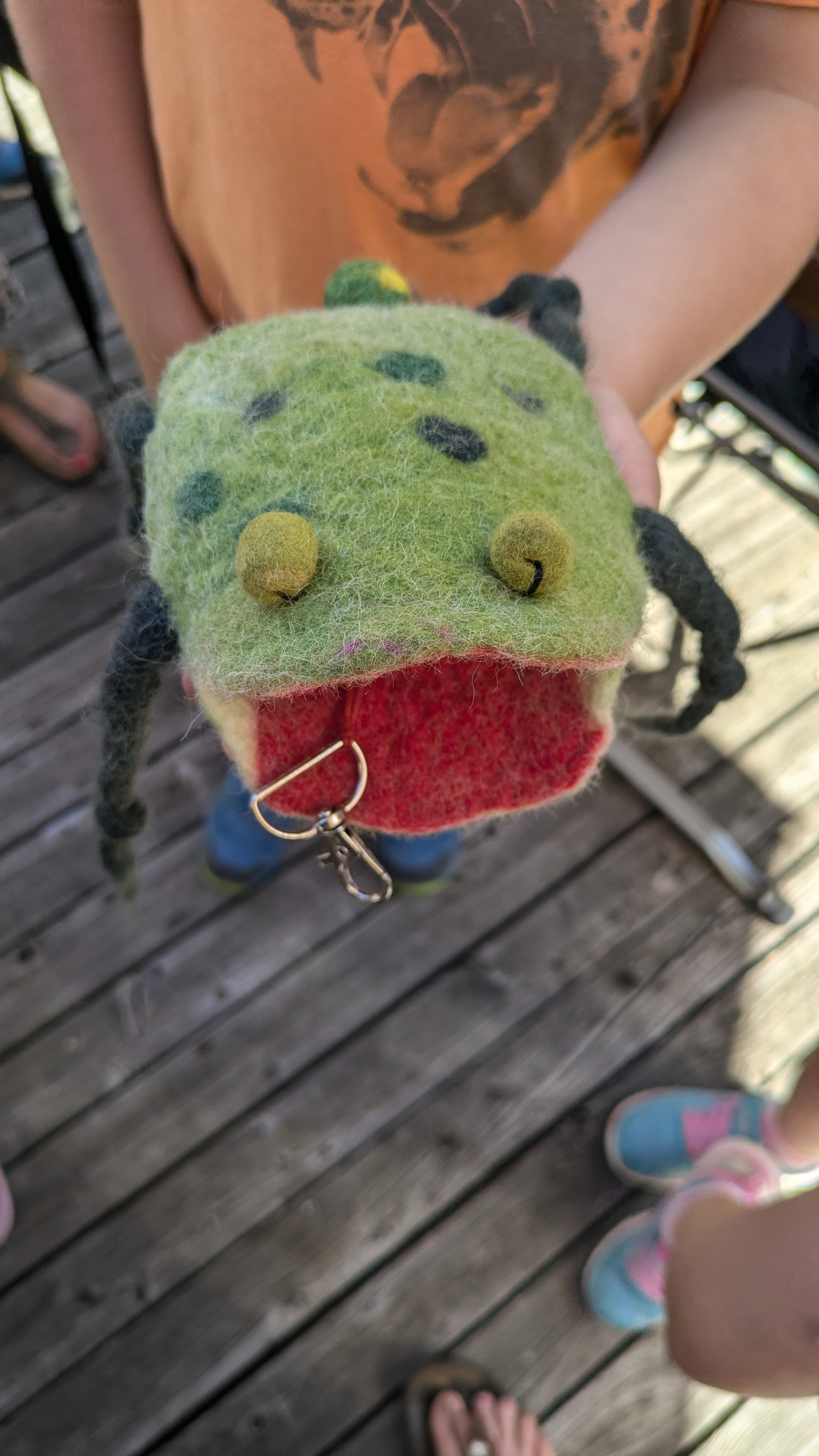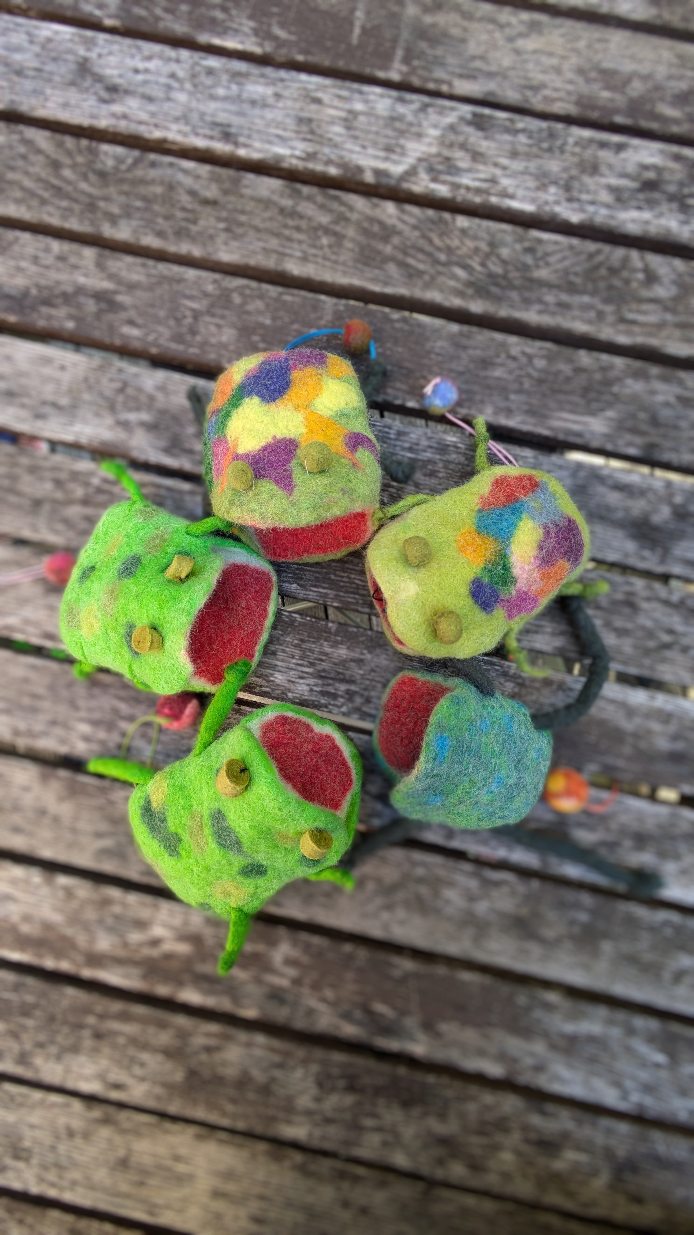 Der Schlüsselfrosch wurde aus Einzelteilen zusammengefügt. Hierzu filzten die geschickten Kinderhände erst ein Täschchen und danach noch weitere Einzelteile. Belohnt wurden die Kinder mit einer stabilen Schlüsseltasche im Froschdesign - selbstgemacht - alle verschieden bunt und jede einzigartig!