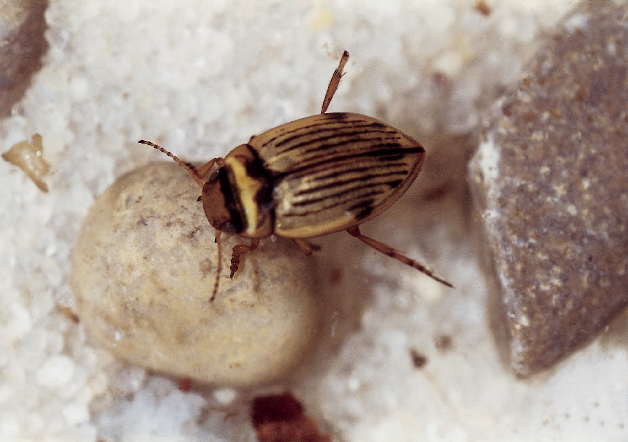 In der Unteren Isar konnten bisher 392 verschiedene Arten der Wasserwirbellosen nachgewiesen werden. Vermutlich während der letzten Eiszeit - vor den Alpengletschern geflohen - ist der Ähnliche Zahnflügel-Tauchkäfer.